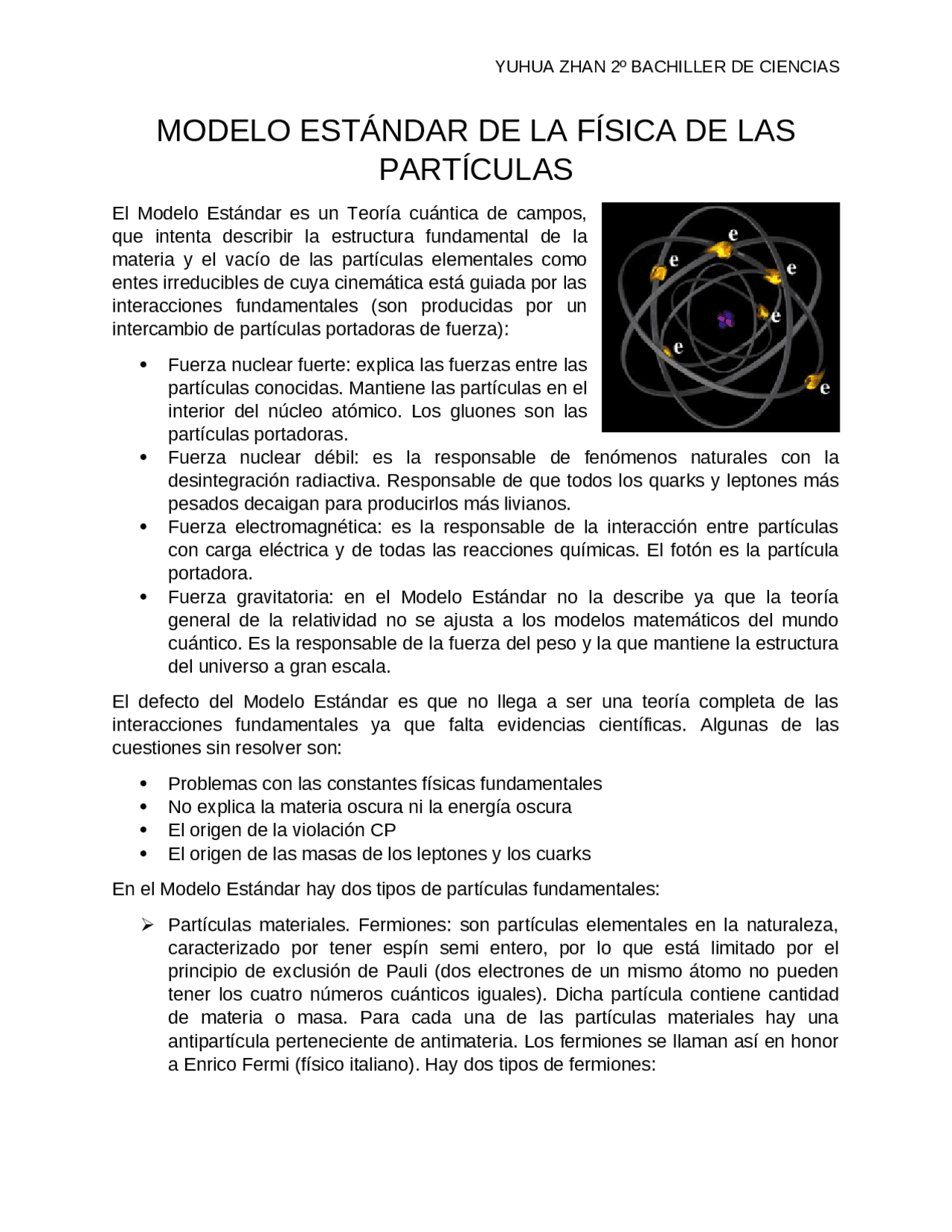 Modelo estandar de la fisica de particulas Apuntes de Química Docsity