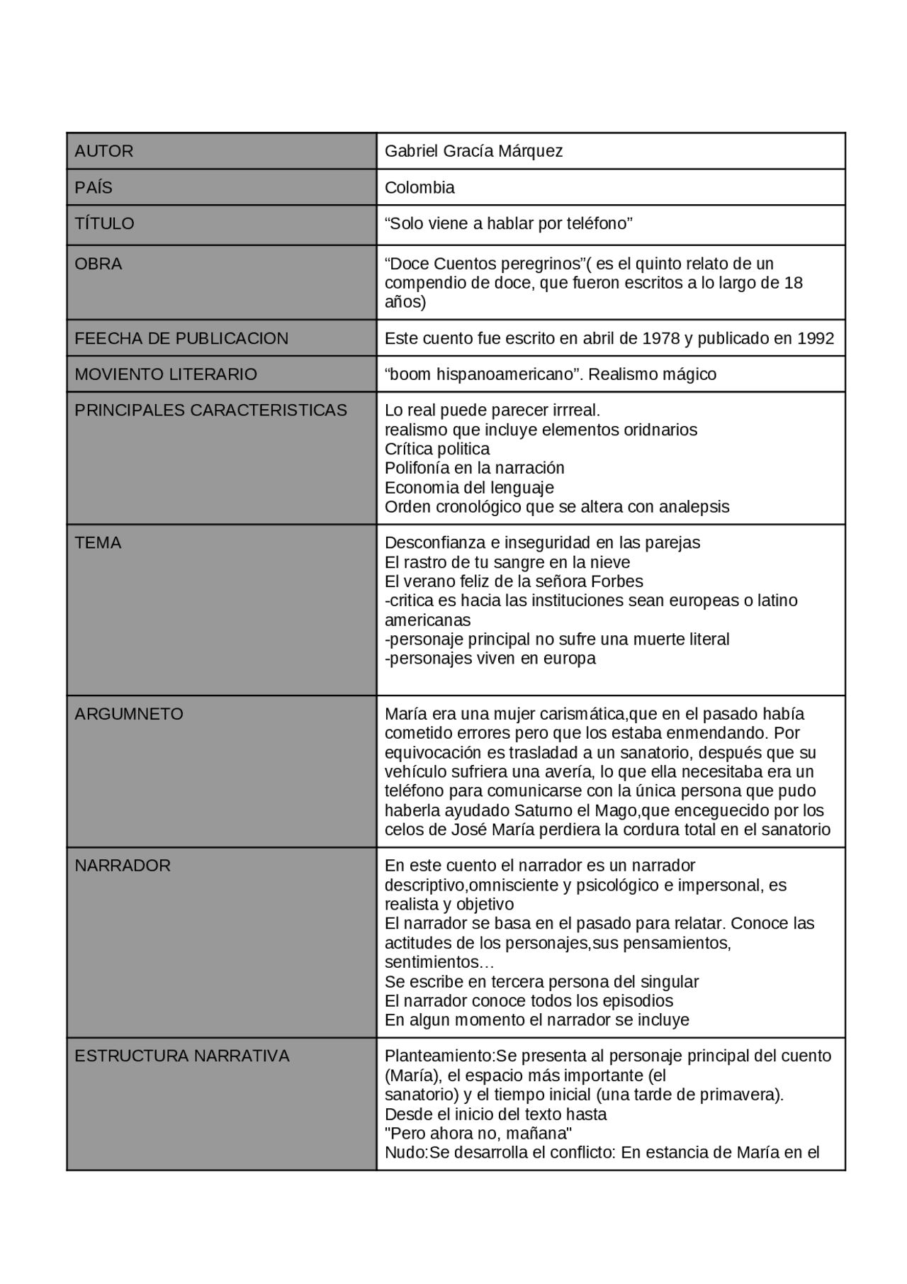 actividades elabora un resumen de los principales contenidos incluidos en este tema. lee un cuento contesta las siguiente preguntas: solo vine hablar por. Sólo vine a hablar por teléfono GAbriel García Marquez Una tarde de lluvias primaverales, cuando viajaba sola hacia Barcelona conduciendo un coche alquilado, María de la Luz Cervantes sufrió una avería en el desierto de los Monegros.