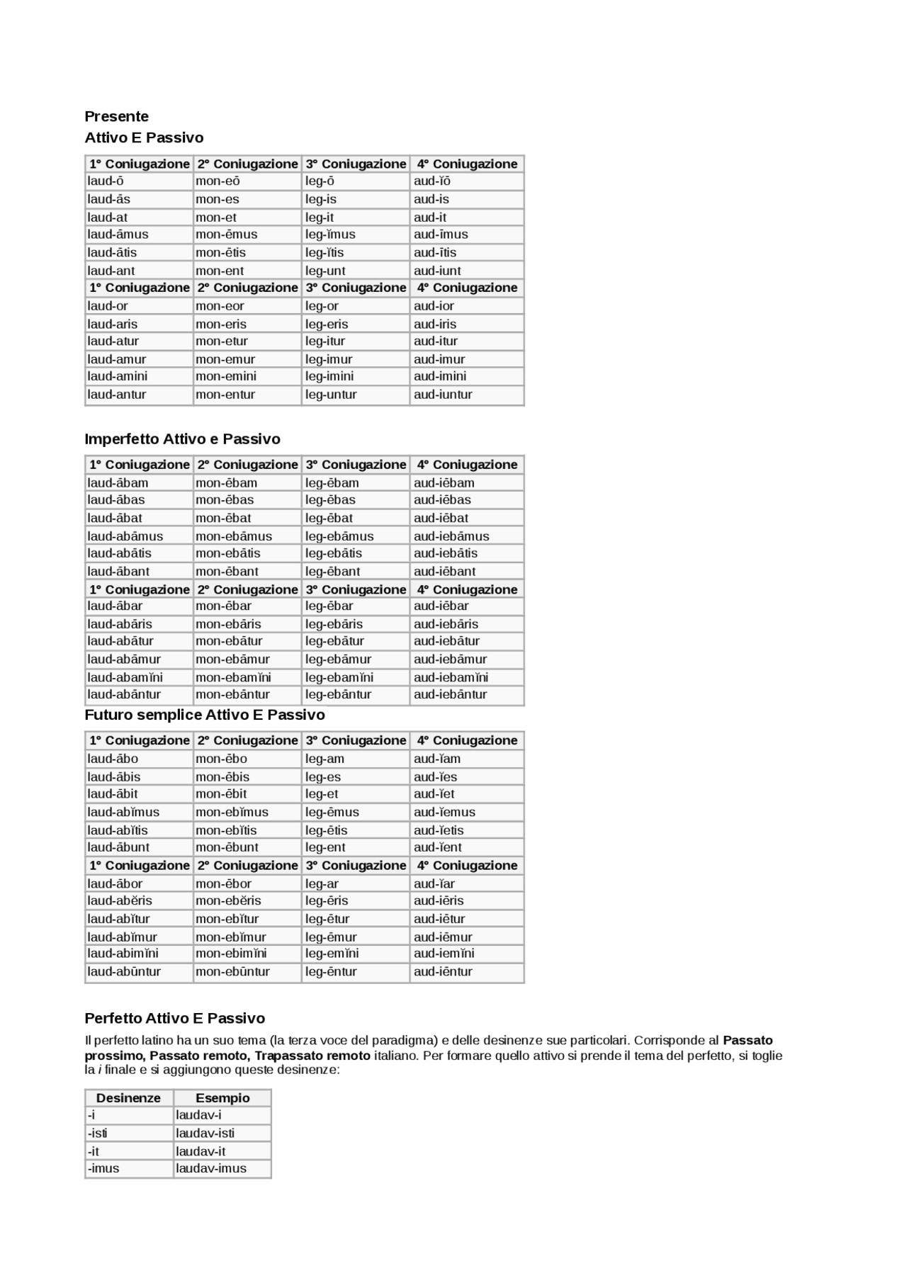Verbi Latino tutte le coniugazioni Docsity